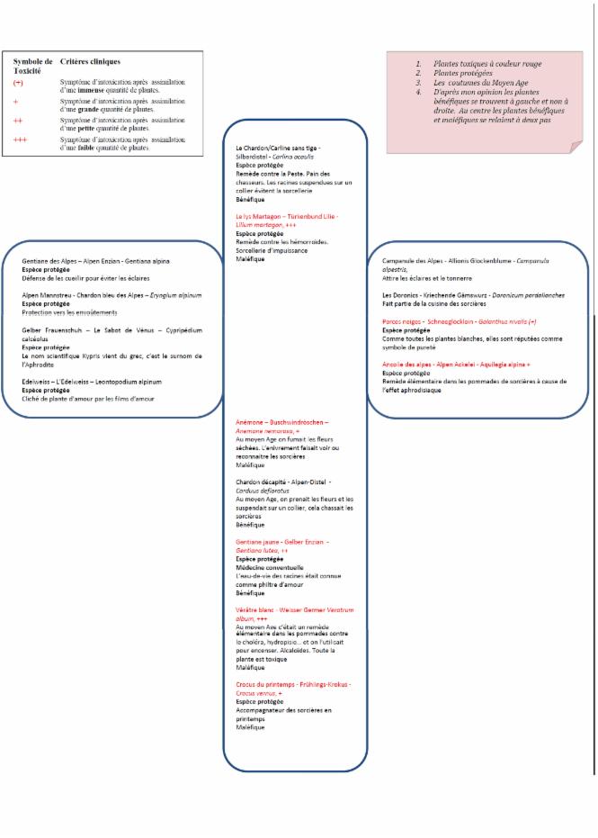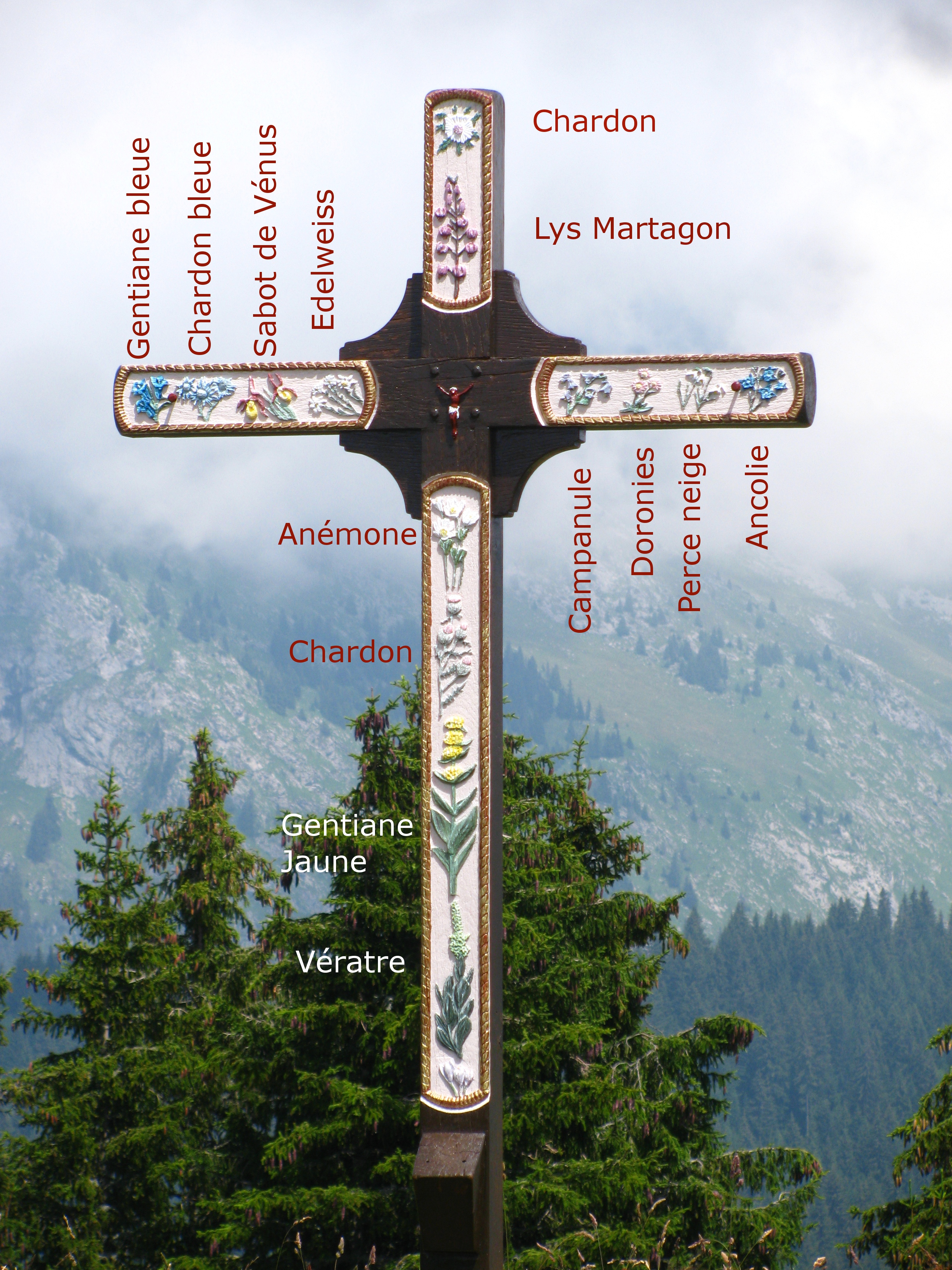 Ayant entendu dire que sur cette croix, il y aurait d'un côté les fleurs dites "Maléfiques" et de l'autre les fleurs dites "Bénéfiques" et ce par une vieille coutume utilisée par les moines pour que les bergers puissent reconnaitre les bonnes herbes pour leur troupeau, J'ai demandé à une personne qualifiée de me renseigner.